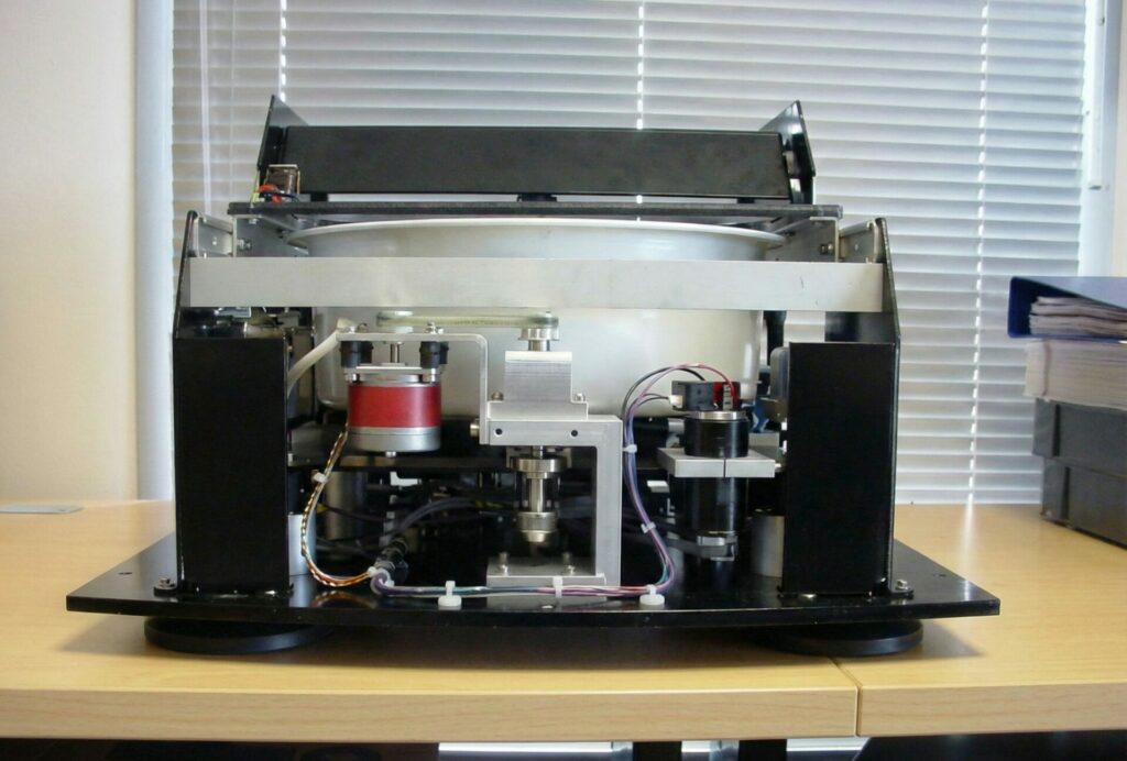 - Une seconde version intégrant une prise automatisée des échantillons, une centrifugeuse ainsi qu’un remplissage automatisé des produits réactifs. Le système de vision optimisé permettait des rapports de test plus précis et générés automatiquement à l’utilisateur final